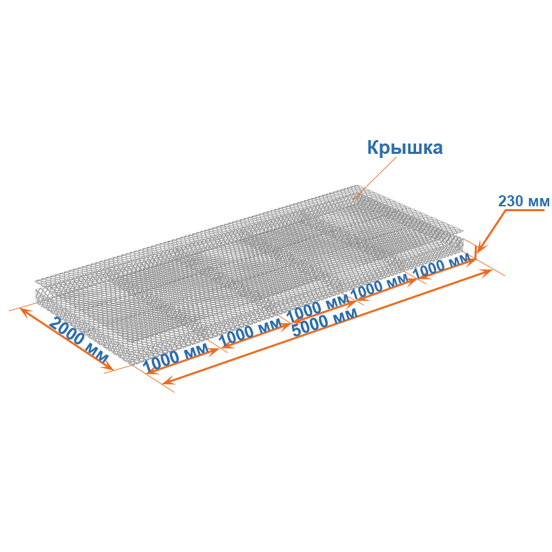 Пример применения: укрепление откосов и русел на типовых участках; заполнение камнем фракции крупнее 60х80, фиксация крышек и кромок после выверки отметок.
